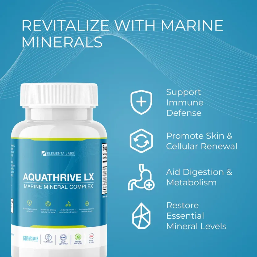 Modern diets and daily routines can leave many people feeling “off” — low energy, sluggish digestion, and overall imbalance. Aquathrive LX is a marine-based mineral blend designed to support whole-body nourishment and everyday resilience.